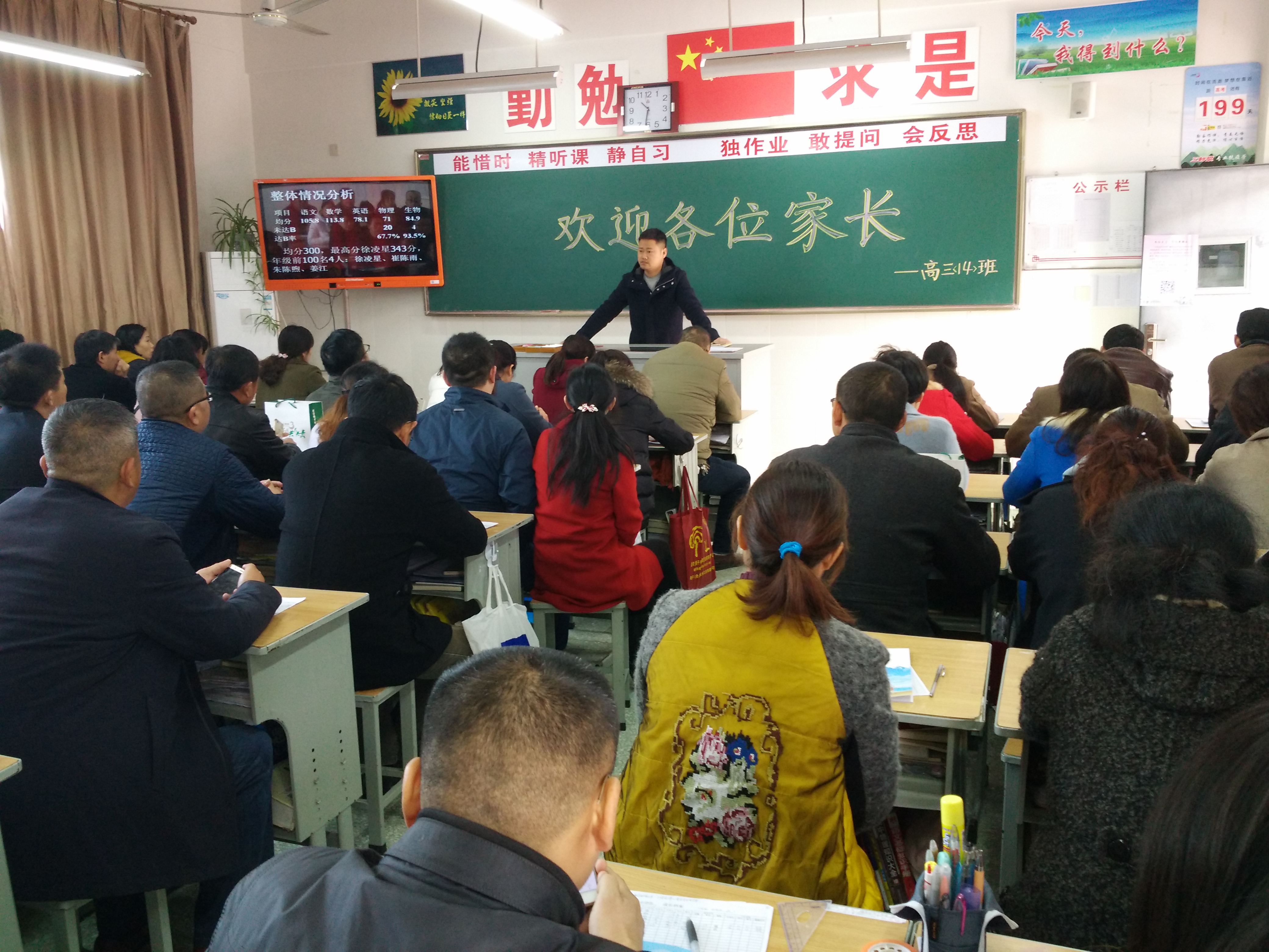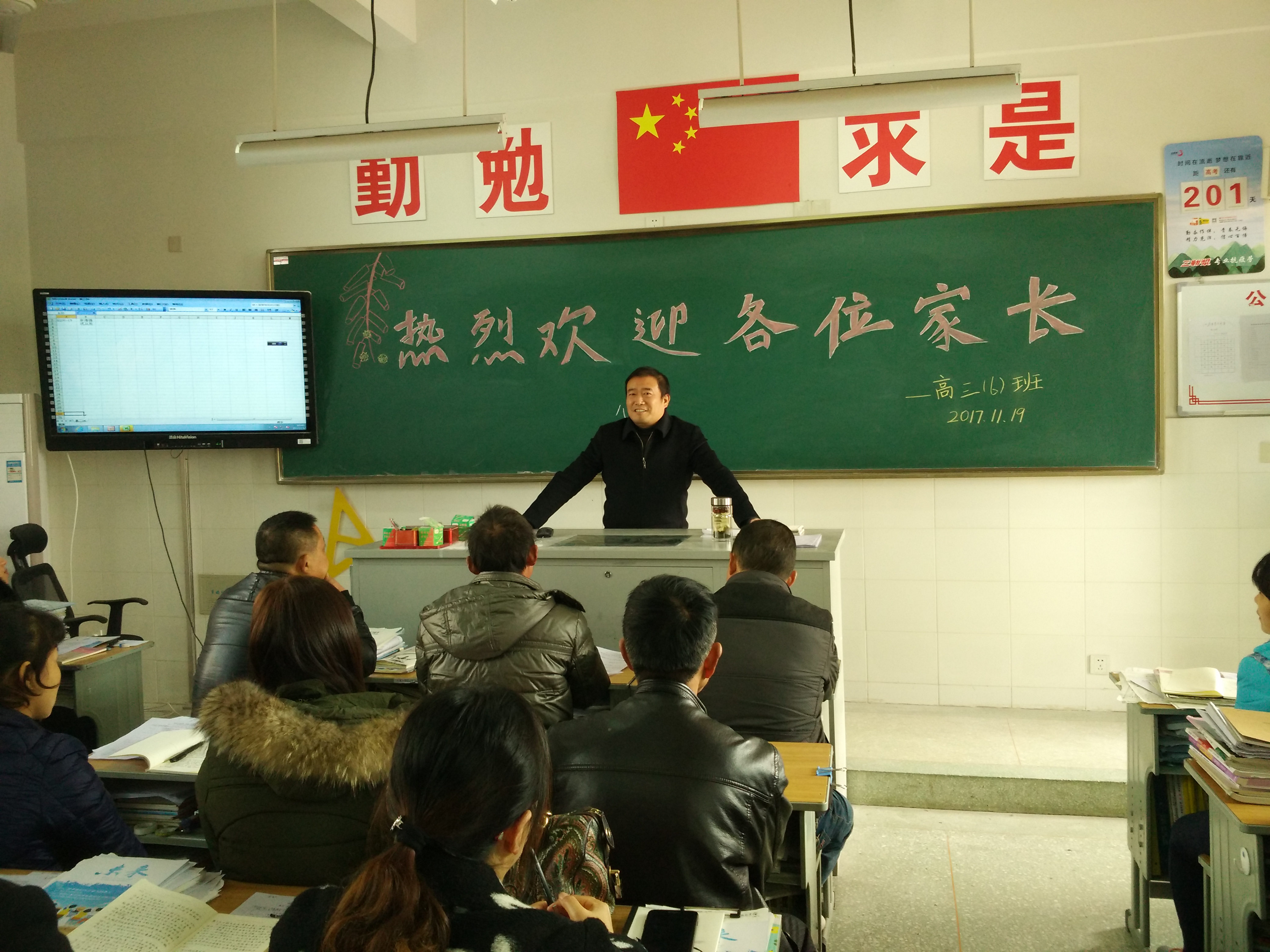 為了進一步加強家校聯系,凝聚家校教育合力,幫助學生取得高考復習階段的更大進步,贏得2018年高考的勝利,我校高三年級于11月19日上午召開高三年級學生家長會。本次家長會分為兩個階段、四項議程。第一個階段家長在風雨操場集中聽取學校黨委書記、校長鄒施凱的重要講話和年級主任金松濤關于期中考試的數據分析以及半學期來學生在作文、學科競賽等方面所取得的優秀成績,會議由年級分管校長謝謙云主持;第二階段家長在教室分班級交流,高三年級全體班主任及科任老師出席了本次家長會。