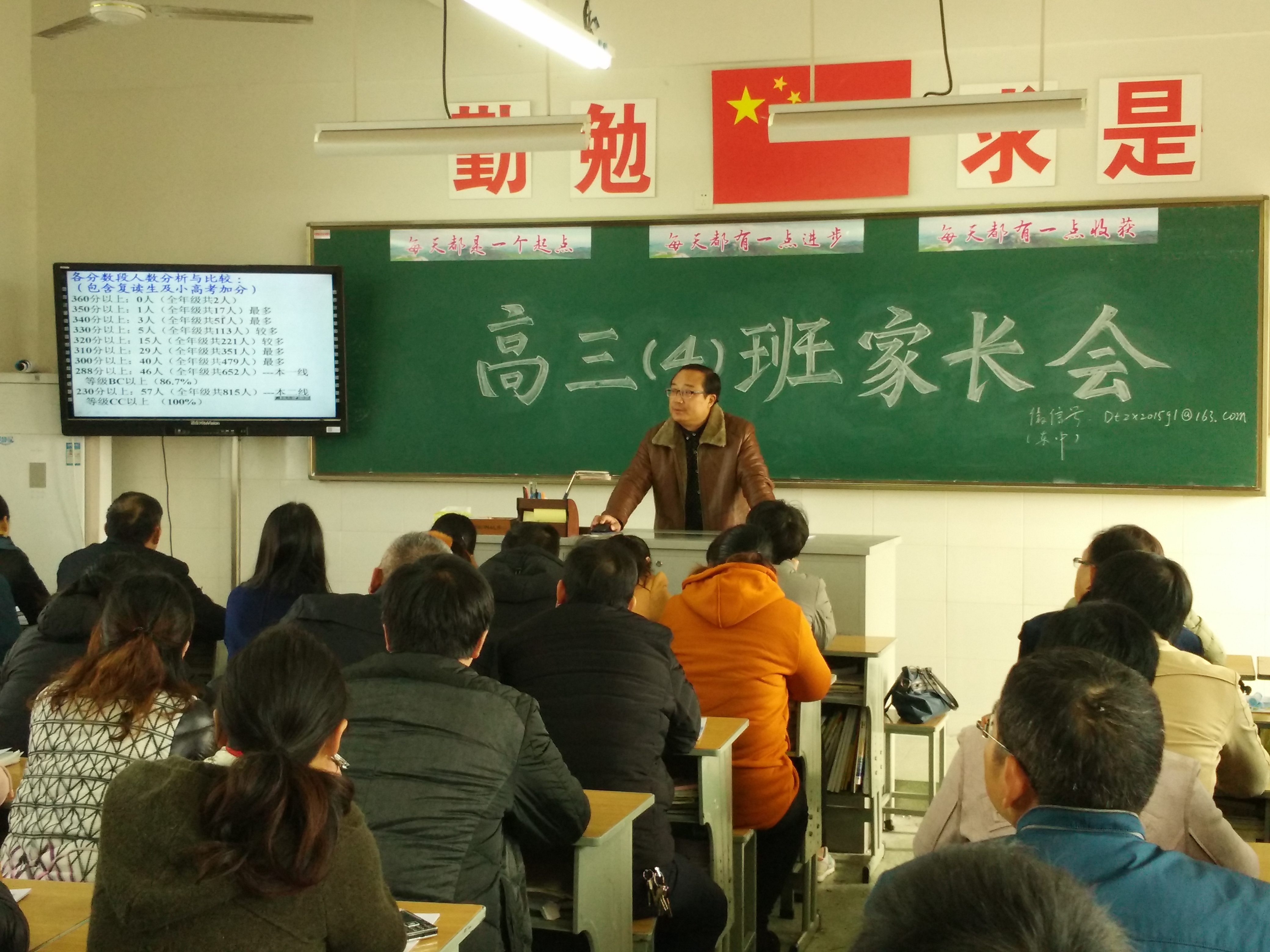 會議的第一項議程由金松濤主任通報年級工作和期中考試數據。他重點就期中考試中的模擬達線人數、達線率、各科均分、各分數段作了分析和對比,上述數據在鹽城市同類學校均處于第一!這與家長們的關心和支持密不可分。他還回顧了本屆高三小高考時的情況以及本學期以來高三學生在各類競賽中的優秀表現,并提出:一、樹立正確的目標。二、進一步弘揚勤奮意識。三、加強安全意識。