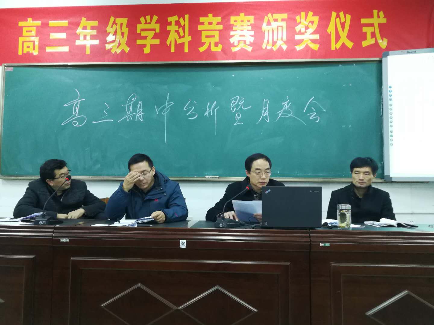 11月20日晚六點,高三年級在高三學苑階梯教室召開期中考試分析會暨11月份月度工作會議。本次會議是繼高三年級班級分析會、高三年級自信高考200天學生鼓勁動員大會、高三年級學生家長會之后的高三年級期中分析系列會議之一。會議由年級副主任殷冬前主持,出席會議的還有年級分管校長謝謙云、年級主任金松濤、年級分管主任王軍及高三年級全體教師。