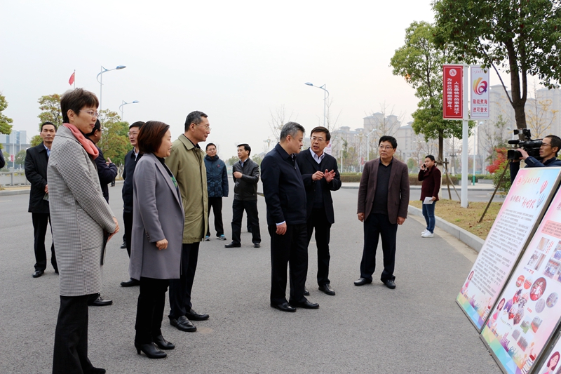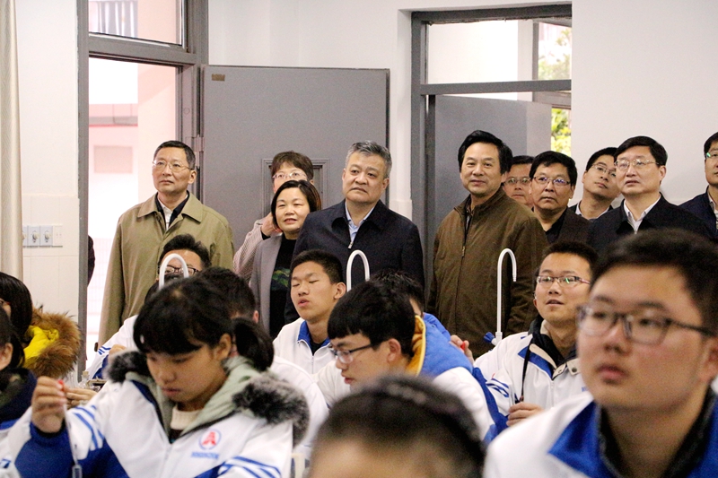 調研中,王江副省長對東中的辦學歷史、在城東新區的教學現狀、學校高位發展的規劃以及學生成長的實踐追求留下了深刻印象。在大型展板前,校長、黨委書記鄒施凱向王副省長詳細匯報了東中跨入新時代打造高品質示范高中的新目標,定位“另起一行,我是第一”推進適合性教育的新追求,聚焦“課比天大、讓學引思”深耕高效課堂的新實踐。以及近兩年來,東中在高考、小高考中連年實現的躍升,學生個性化發展獲取的新成就,校園勵志文化建設呈現的新氣象,社會各界包括企業界對東中學子的傾情關注等情況。