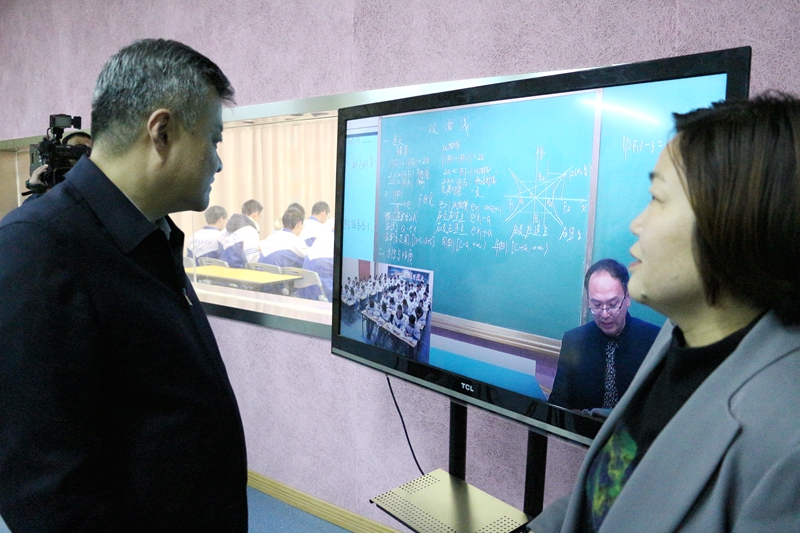 在錄播教室,鄒施凱向王副省長一行介紹了市委對東中教育的高度重視,對現代化教育裝備建設的大力投入。東中現有現代化錄播教室四個,在省內普通高中處于一流。無論對學校的教研、課堂教學升級,還是對外公開教學都發揮著巨大作用。王副省長一行對東中擁有如此先進的設備十分高興,希望東中充分發揮錄播教室的各項功能,讓東中教育更上新臺階。
