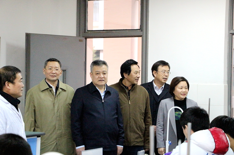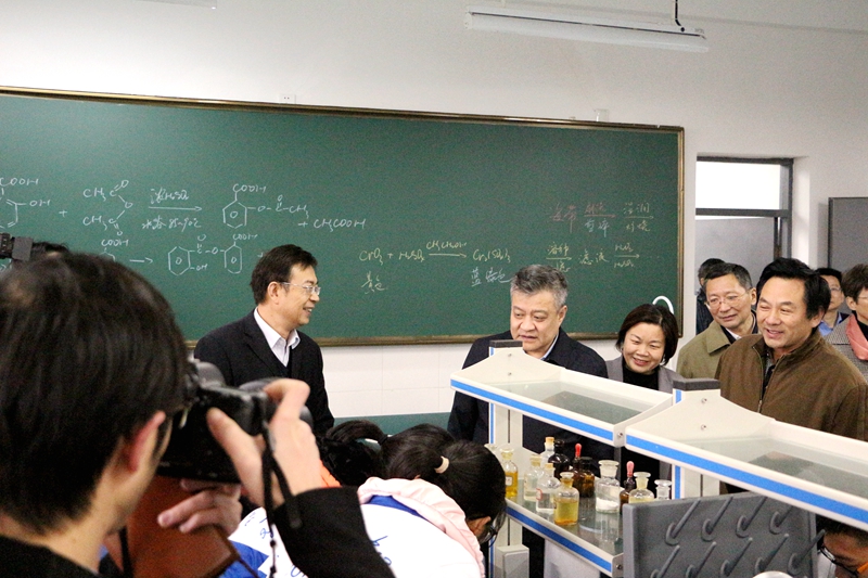 調研中,王副省長走進東中“江蘇省普通高中化學課程基地”,對基地規模、功能發揮、課程建設等情況進行了深入了解,現場觀看了學生正在操作的化學實驗、老師正在講授的化學實驗課。并向鄒施凱、基地負責同志仔細詢問了課程基地的示范輻射功能、學生實驗操作能力培養等相關問題。