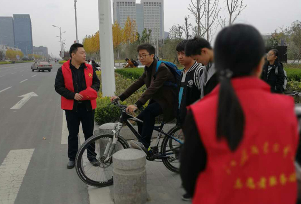 近日,在城東新區雅居路與經八路交叉路口的紅綠燈下,一群身著紅色志愿服務馬甲的年輕身影顯得尤為顯目,這是我校的青年教師們正在開展文明交通志愿服務活動。