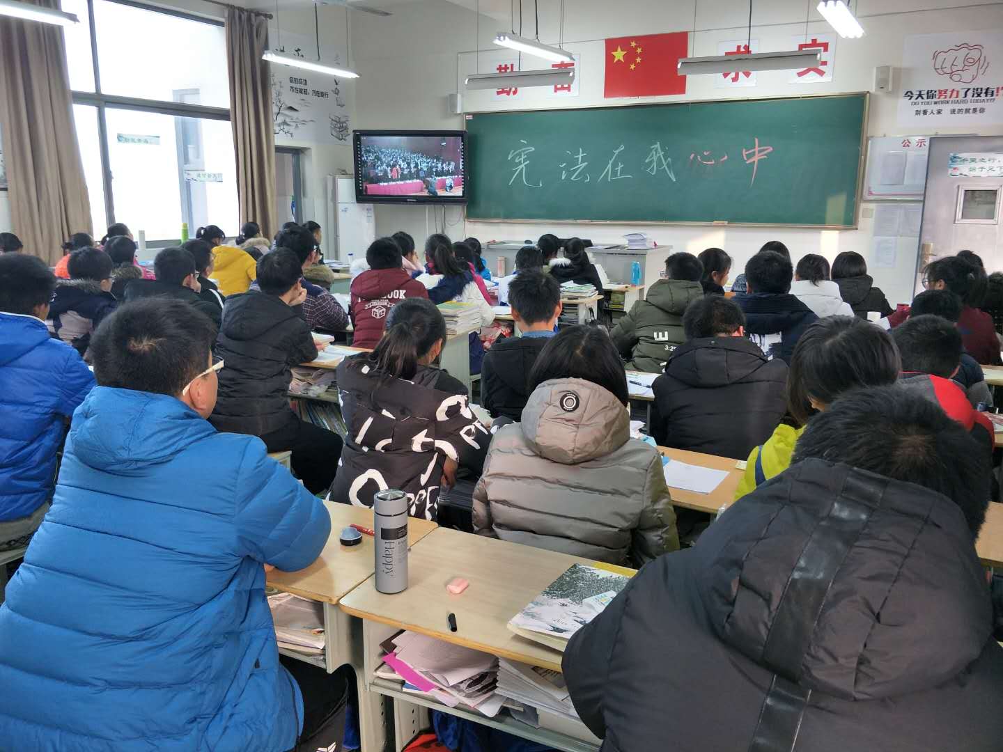 為培育學生法律意識,樹立憲法精神,按照學校統一安排,高一年級于12月4日下午召開主題班會,首先所有學生收看了中央電視臺《第二屆全國學生“學憲法講憲法”活動團體總決賽》,同學們在觀看比賽過程中,神情專注,興趣盎然,為選手的精彩演講所震撼,報以熱烈的掌聲。