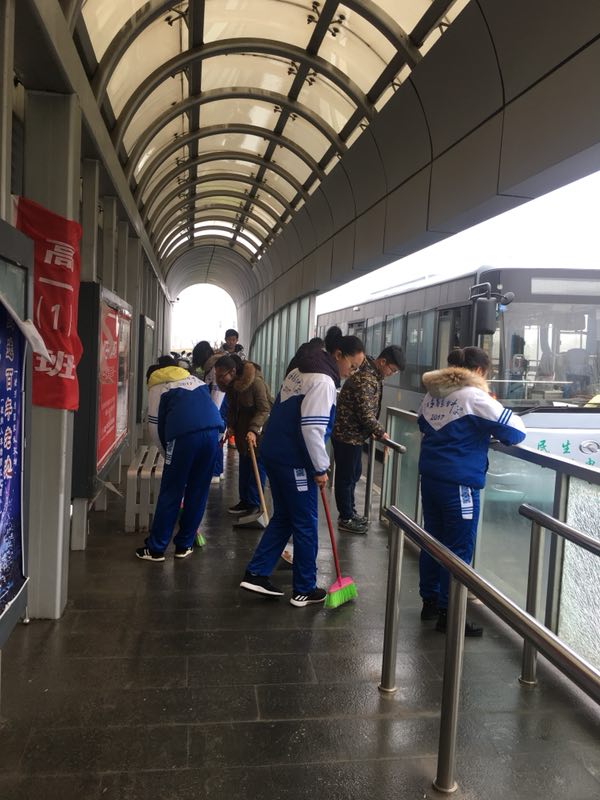 身為活動參與者的我們既興奮又緊張。他們首先來到城東街心公園。原本寂靜的公園因為他們這群身著校服的學生添了幾份生機。公園不大,打掃一圈卻仍是費力的活。隨后他們馬不停蹄地來到城東公交站臺,抹去座位上的灰塵,清掃周邊的垃圾,碰巧到站的司機與下車的乘客為他們點贊,大家頓時精神倍增,一致決定再去紅綠燈口,打掃衛生,同時做一回黃馬夾。