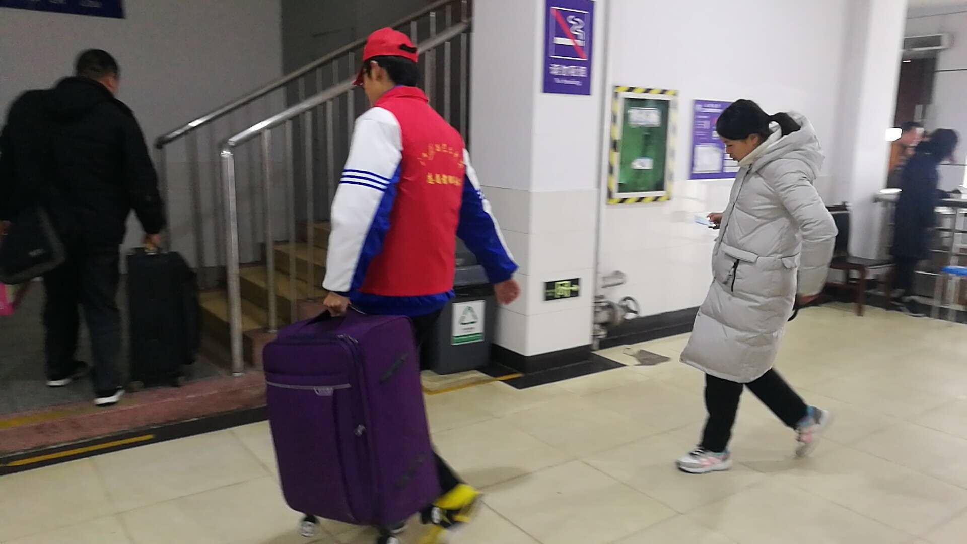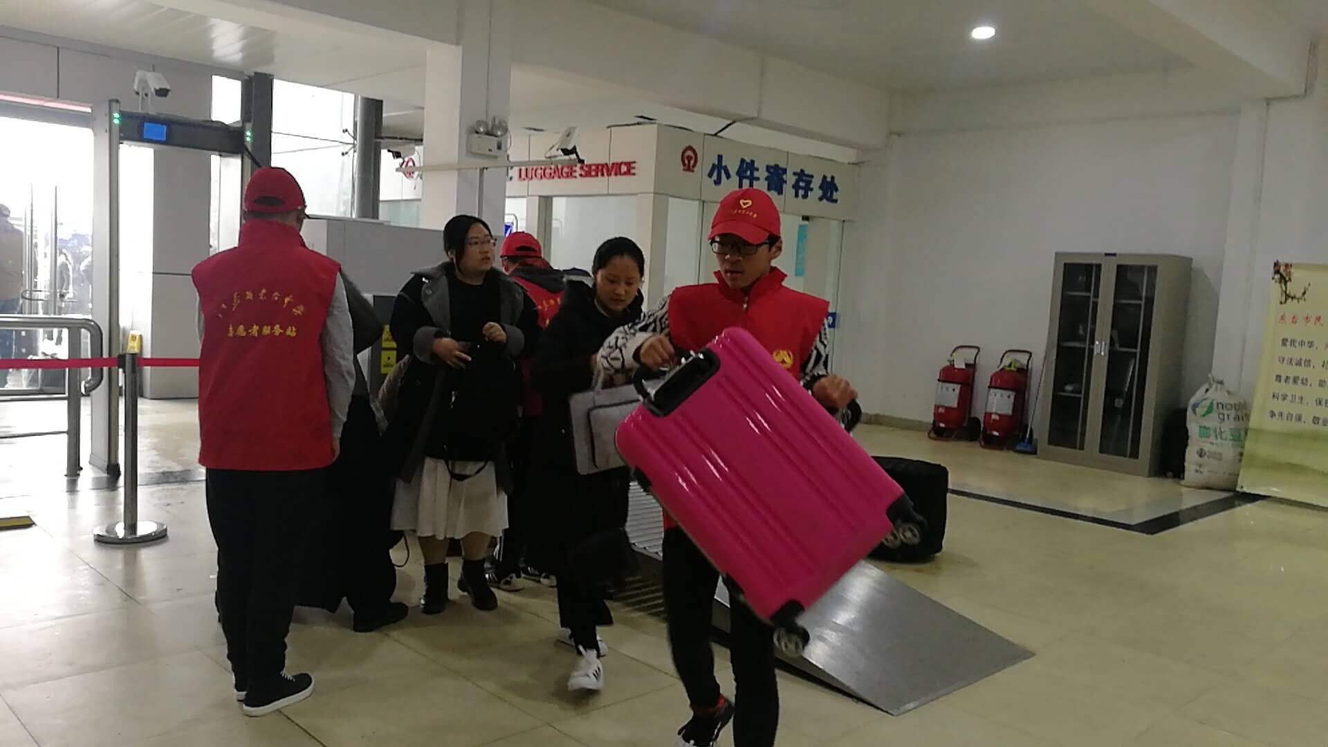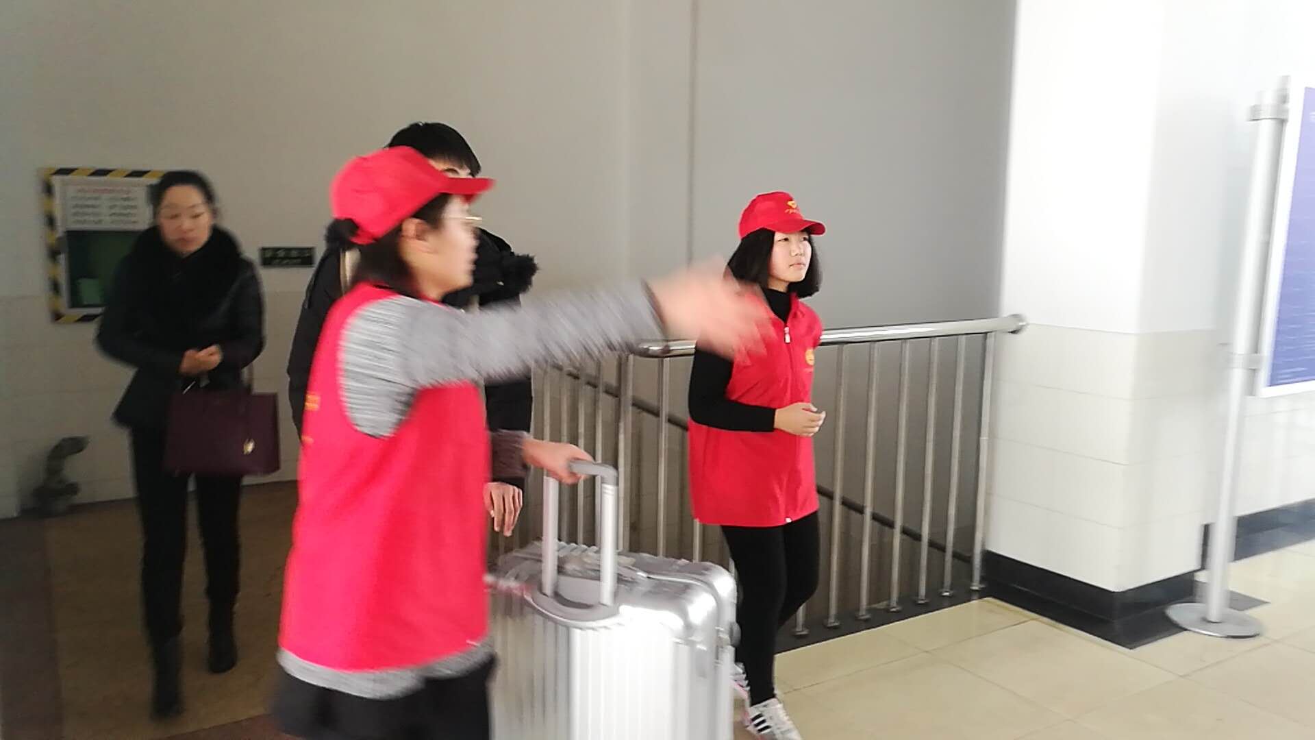 3月4日上午8時,盡管天氣有些陰冷,10名志愿服務隊員懷著激動的心情奔赴火車站,旨在幫助火車站的旅客們解決出行問題,順利的踏上旅途。到達火車站并與工作人員進行了交流后,隊長對所有人進行了分工:6名同學在站臺幫助有困難的旅客搬運行李,3名同學在候車區指引旅客找到對應的檢票點,1名同學在檢票口協助車站人員工作。分工后,志愿者們便分赴各自的崗位。