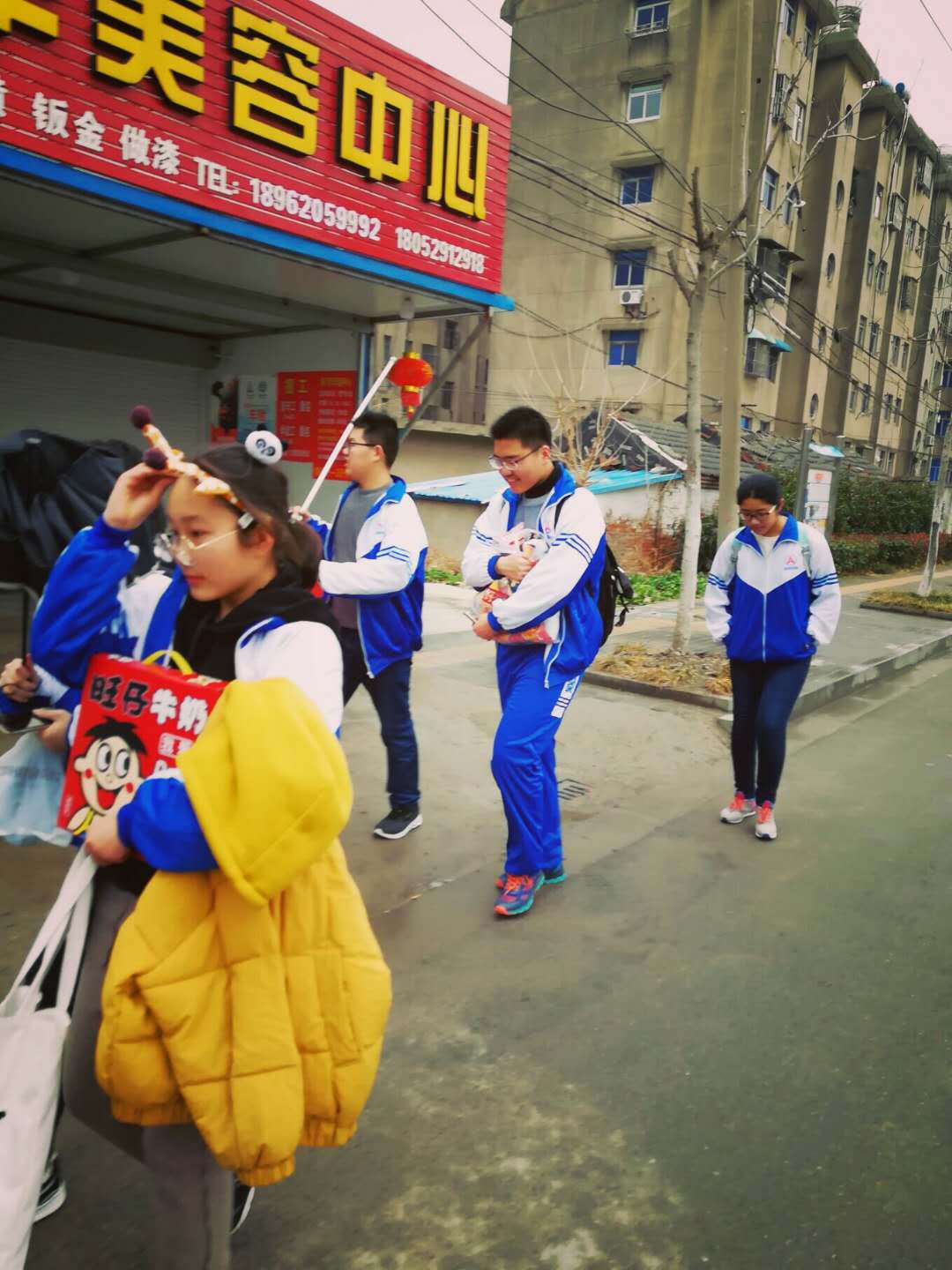 大家在商場先在商場集合,然后分工合作,向路人募集善款,經過同學們的不懈努力,很快集夠了錢,買好禮物,大家乘車來到福利院。