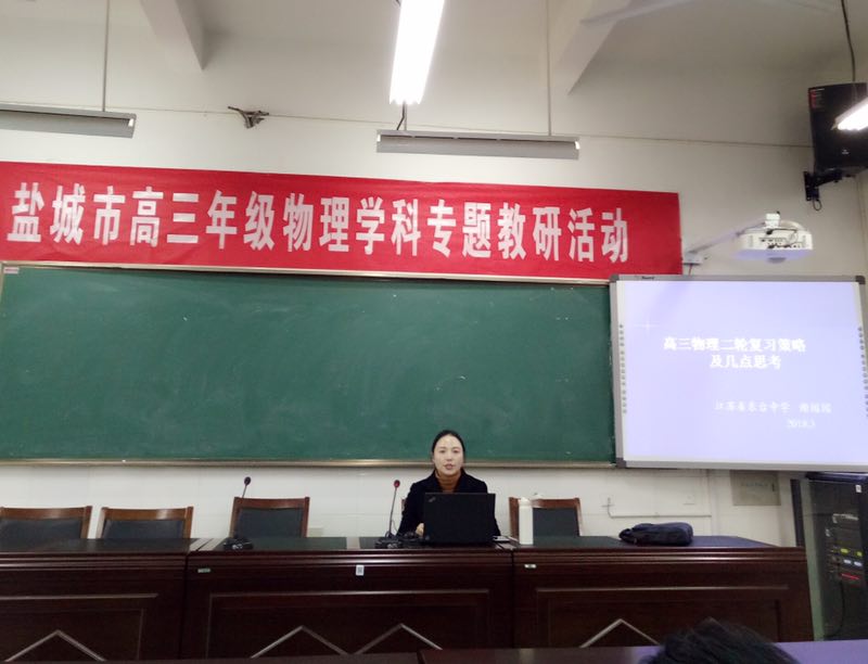 昨天(3月7日),應鹽城教科院邀請,在江蘇省東臺中學舉辦的鹽城市2018屆高三物理二輪復習研討會上,我校骨干教師謝園園開設了名為《高三物理二輪復習策略及幾點思考》的物理專題講座。