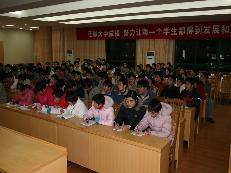 多年來,我校注重對學(xué)生進(jìn)行熱愛黨的教育,注重在學(xué)生中發(fā)展黨員。廣大學(xué)生在政治上積極要求進(jìn)步,不斷向黨組織靠攏,僅2004年就有100多名學(xué)生向?qū)W校黨委遞交了入黨申請書。為了讓他們不斷掌握黨的基本知識(shí),增加對黨的宗旨、任務(wù)和奮斗目標(biāo)的了解,本學(xué)期,在學(xué)校黨委委員各上一堂黨課的基礎(chǔ)上,吳鐵明同志記又為學(xué)生們上黨課。
