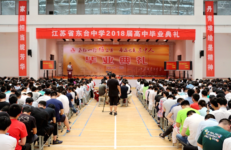 今天(6月23日)上午,江蘇省東臺中學2018屆高中畢業(yè)典禮,在風雨操場激情演繹。雄壯的國歌聲,振響開千余名師生的心扉。三年的指間筆走,三年的行色匆匆,三年的風吹雨打,東中精神和著這鏗鏘的旋律,譜寫出一顆顆鴻鵠之心,一張張成功的面龐,一段又一段卓越與神奇。滿場激動之情,從來沒有像今天這樣難以自抑。