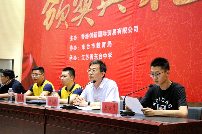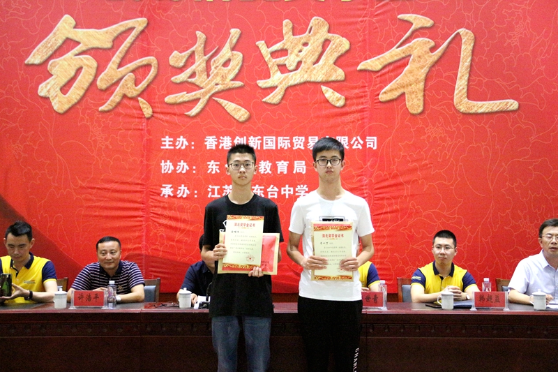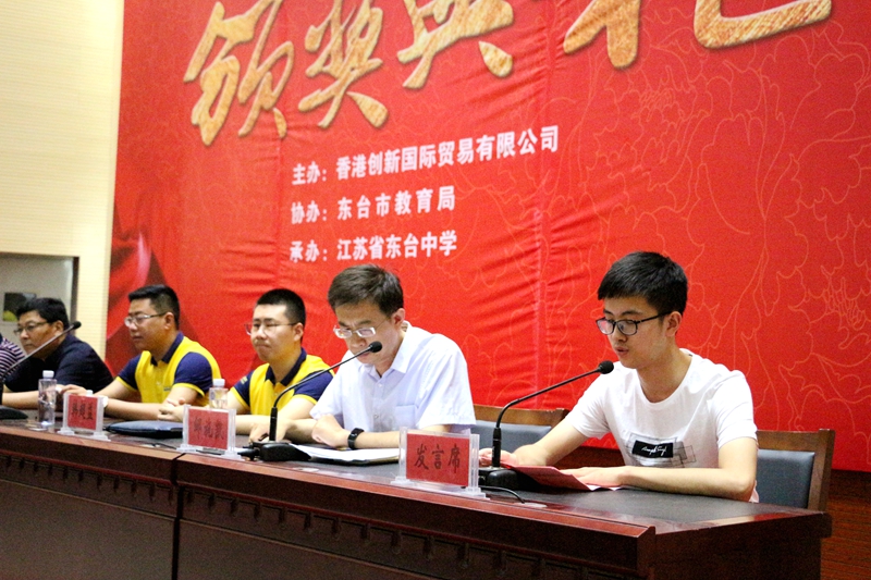 今天下午,由香港創(chuàng)新國際貿(mào)易有限公司創(chuàng)設(shè)的“清北獎(jiǎng)學(xué)金”頒獎(jiǎng)典禮在東中三樓報(bào)告廳隆重舉行。創(chuàng)新國際董事長許世青、地區(qū)經(jīng)理韓超益、企業(yè)經(jīng)理卞文斌,市心連心志愿者協(xié)會(huì)會(huì)長劉浩平,東臺市教育工委書記、局長王勁松應(yīng)邀出席。來自2016級400多名師生參加了這一盛事。頒獎(jiǎng)典禮由江蘇省東臺中學(xué)校長、黨委書記鄒施凱主持。