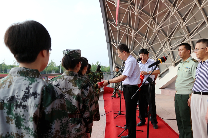 趁著年輕的火焰燒的正旺,隊旗下的我們有了全新的方向;最美不過頭頂的青春,我們把軍訓的激情點燃。儀式結束后,隊列、軍姿訓練伴隨20面迎風飄揚的隊旗,全面展開。