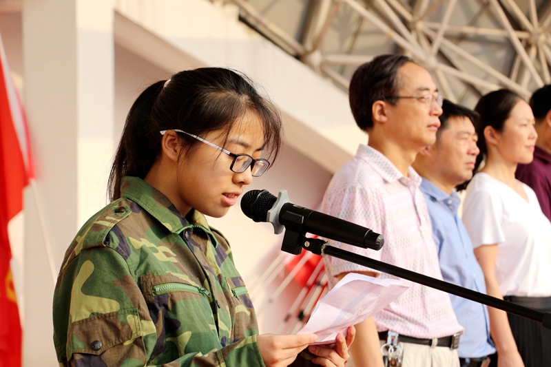學生代表、高一(1)班高羽同學在發言中表示,對于剛入學的我們,軍訓是抹去嬌氣,留下堅韌;是磨滅輕狂,堅定沉穩。軍訓不僅是體能的考驗、心智的磨礪,更是一次綜合素質的鍛造。通過軍訓,我們將努力把“培養自覺習慣、訓練團隊精神、服從鐵的紀律、提升綜合素質、提升思想認識”與東中文化的五大訴求環環相扣、緊密相聯。擎起“真心英雄”的風帆,收獲高中生活第一筆寶貴的精神財富。
