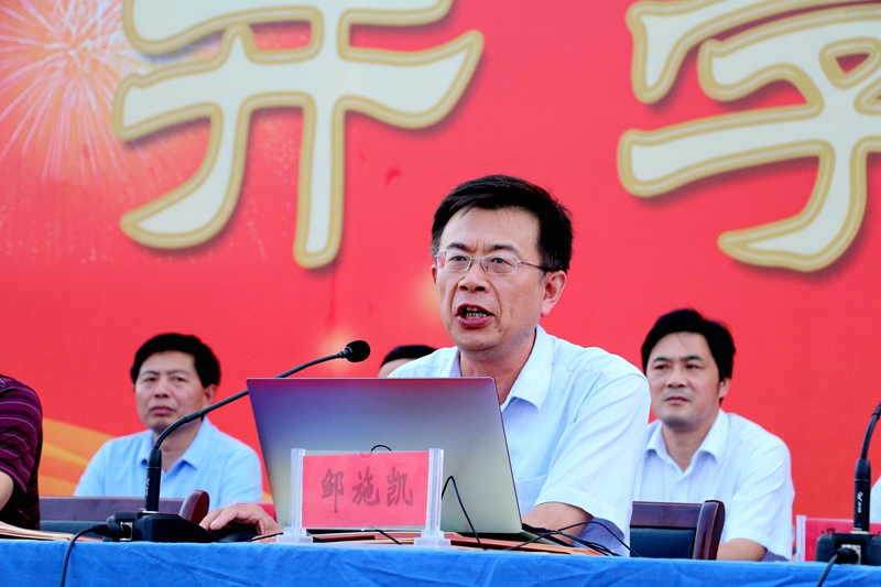 新學年開學,最具魅力,它孕育著無盡的希望,意味著無限的可能。鄒施凱在典禮上直言,在即將踏上新的征程之際,讓我們以非同凡響的超我自信,賡續無比自信的大美東中!他指出: