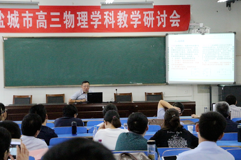 本次教研活動(dòng),從昨天下午開始在江蘇省東臺(tái)中學(xué)舉行。全市各縣區(qū)物理教研員,三、四星級(jí)高中校的高三物理備課組長(zhǎng),部分骨干教師及我校高三物理教師共近百人出席。研討中,阜寧中學(xué)蔣守培教授、安豐中學(xué)黃劍老師分別作了“2018年江蘇高考試卷解析”“2019屆高三一輪復(fù)習(xí)策略和建議”兩個(gè)講座,給本次教研以極大的啟示。