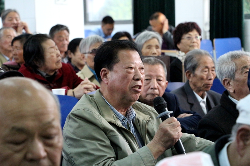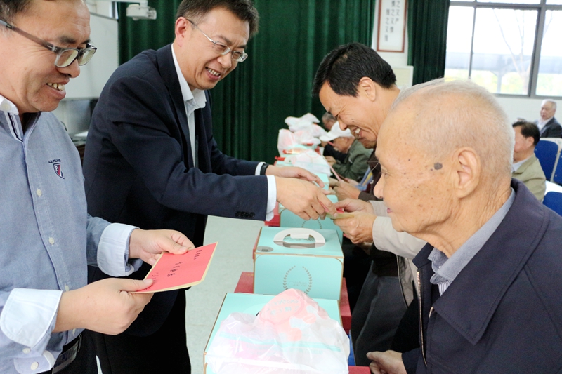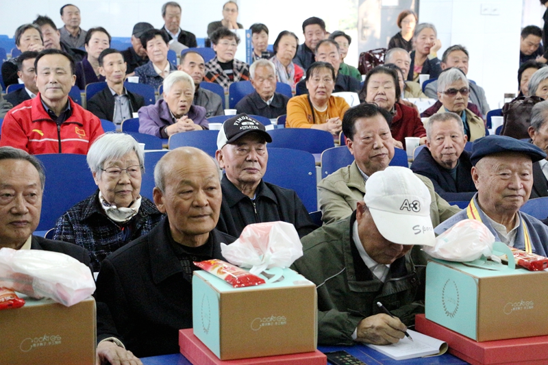 重陽佳節茶話會上,校長、黨委書記鄒施凱向今年70、80、90慶生的16位老前輩表示衷心祝福。熱忱歡迎你們常回家看看,祝愿你們生命健康而長久,祈愿你們生命明澄而高遠。老前輩們報以熱烈的掌聲。