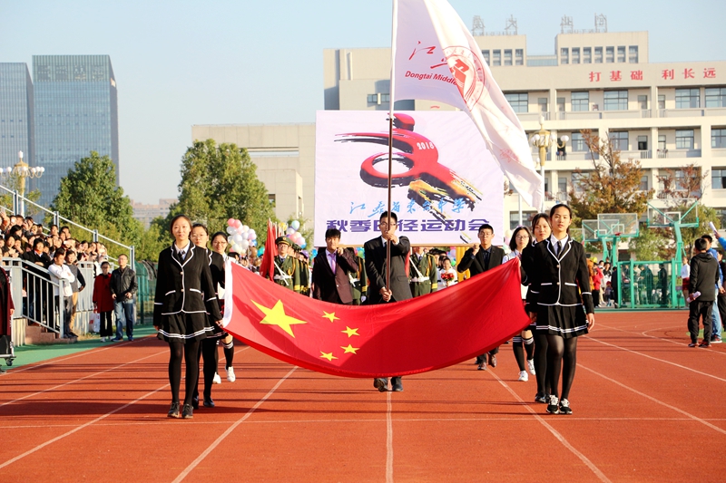 7:20時,雄壯的國歌響徹校園上空。在急切的期待下,伴著運動員進行曲的強勁節奏,2018年江蘇省東臺中學秋季田徑運動會入場式,耀眼打開。