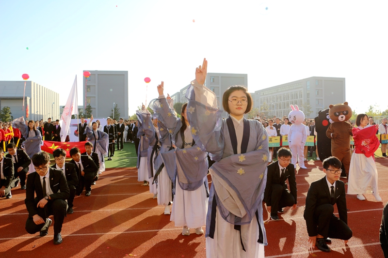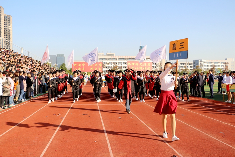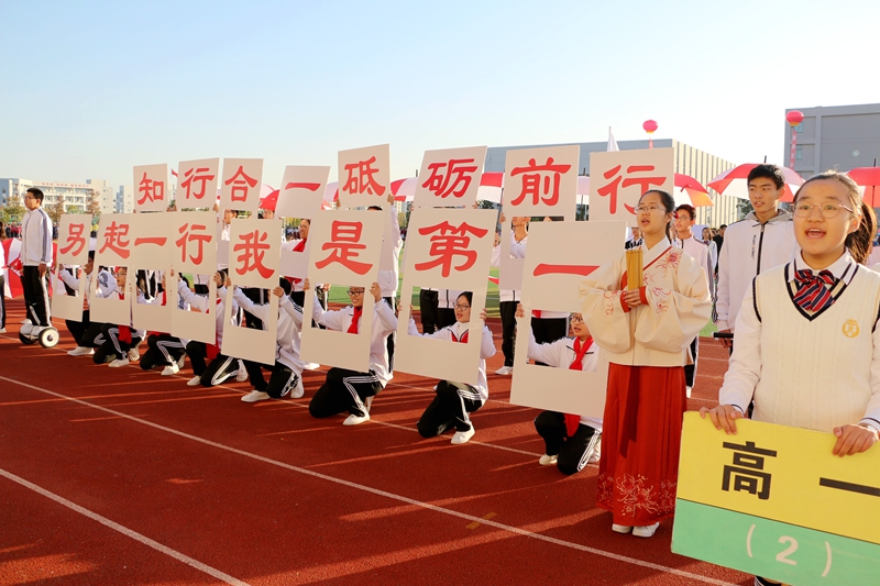極具個性的展示,是三個年級共57個方陣、涵括3000多學子的龐大隊伍,他們以夢幻般的恢弘氣勢,相繼入場。一行行多姿多彩的青春行走,一段段活力四射的創意編排,給校領導、廣大師生和家長來賓,留下了驚鴻一般的絢爛,掌聲、喝彩聲不絕于耳……