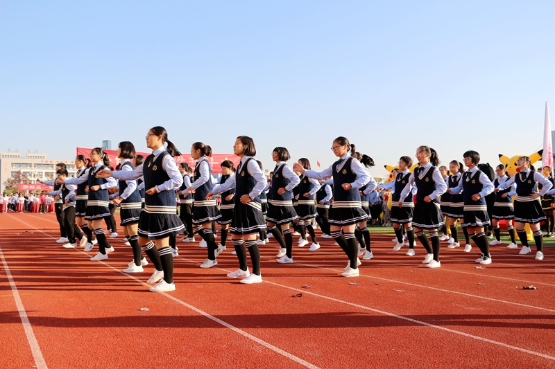 步入會場的國旗隊,意氣風發,莊嚴威儀,英姿颯爽。象征著師生合力精神的校旗隊,氣宇軒昂,精神抖擻。“發揚奧運精神,團結拼搏奮進”的主題會徽,展現東中學子奮勇拼搏的青春模樣。主題方陣引導下的彩旗隊、鮮花隊、氣球隊,表達出全校上下,開拓進取,奮力拼搏,攜手并肩,共創光榮與夢想沖天豪情!