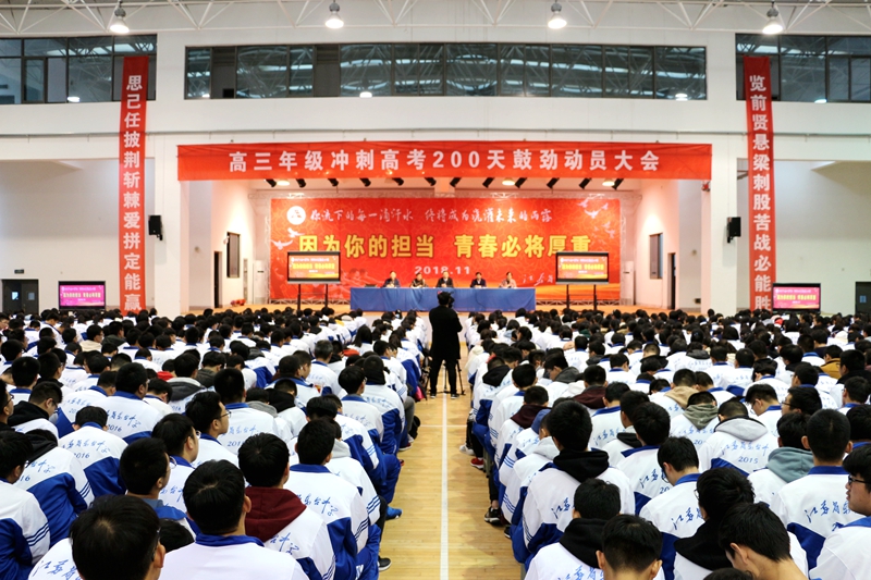 11月17日,距離2019年高考還有整整兩百天。江蘇省東臺中學(xué)在校籃球館隆重舉行高三年級期中表彰暨“第一波”沖刺高考動員大會。校長、黨委書記鄒施凱以“因?yàn)槟愕膿?dān)當(dāng),青春必將厚重”為題,吹響了另起一行再出發(fā)、向著“本一名校”闊步前行的奮斗號角。全體高三師生群情激昂。