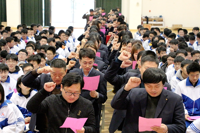 儀式上,學校向每一位同學贈送了《中華人民共和國憲法》讀本;全體高三學生、教師團隊分別以“超越夢想”“創新跨越”為主題,進行了莊嚴宣誓;高三年級主任崔恒杰宣讀了“申淑儀”助學金獲得者名單。由師生合唱的勵志視頻《超越夢想》,把活動再次推向高潮。副校長趙志剛主持儀式。