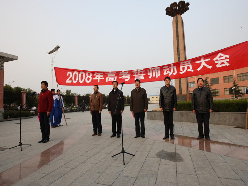 3月19日早晨,我校高三年級全體師生集中在辦公樓前廣場上,隆重舉行2008年高考誓師動員大會。誓師動員大會由副校長楊曉翔主持。