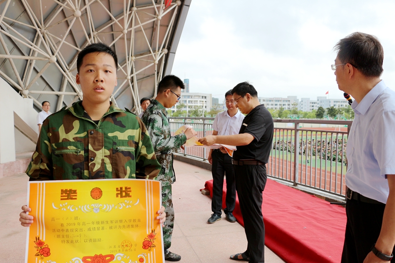 軍訓(xùn),我們贏了自己。總結(jié)表彰中,鄒施凱向付出辛勞的教官們表示誠摯的感謝,對(duì)受軍訓(xùn)表彰的先進(jìn)集體和個(gè)人、喜獲新生入學(xué)獎(jiǎng)學(xué)金的同學(xué)表示熱烈祝賀。他說,軍訓(xùn)是青春時(shí)刻極具價(jià)值的刻意安排。它讓我們?cè)诩o(jì)律與效率、意志與能力,信心與干勁、個(gè)體與協(xié)作等多層面,得到了不可替代的歷練,為今后的高中生活夯實(shí)了一塊堅(jiān)毅之石。我們有理由相信,“鐵的紀(jì)律、鋼的意志、金子般的品質(zhì)”必將伴隨并融入我們的精神世界,在它的目光中,找到我們自由翱翔的天空。現(xiàn)如今,東中學(xué)子的成功路上,充盈正能量、溢滿勵(lì)志情。志在頂峰的我們,絕不會(huì)因留念半山腰的奇花異草而懈怠攀登的步伐。入學(xué)勵(lì)志獎(jiǎng)、剛毅軍綠裝,已鑄成我們?nèi)松咨念B強(qiáng),變成誰也奪不走的力量。它將助力我們?cè)谧蠲赖哪耆A,劈波斬浪,勇往直前,遇見照耀自己的奮斗高光。
