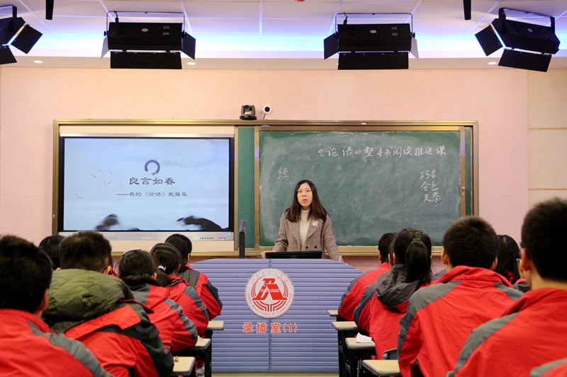 堅持以學為主、以教為輔。在“《論語》整本書閱讀”這節課中,教者引導學生推薦自己最喜愛的《論語》句子,說明推薦理由,自主打開學習思維、指出語言表達特點。并以現場仿寫格言向能力轉化過渡。通過及時引導學生從讀文、讀人、讀道走向讀美,賞析文質中和的語言之美,感受經典作品的文化思維之美。學生領悟文本、探究內涵的深層旨趣油然而生。