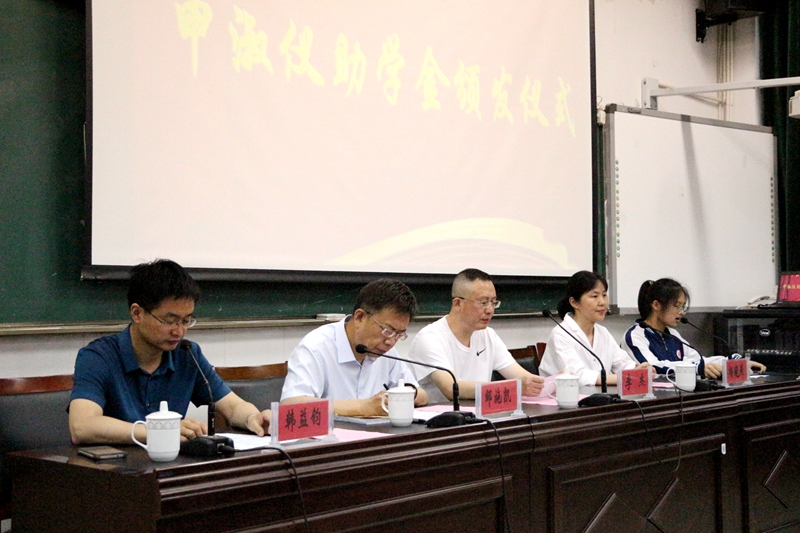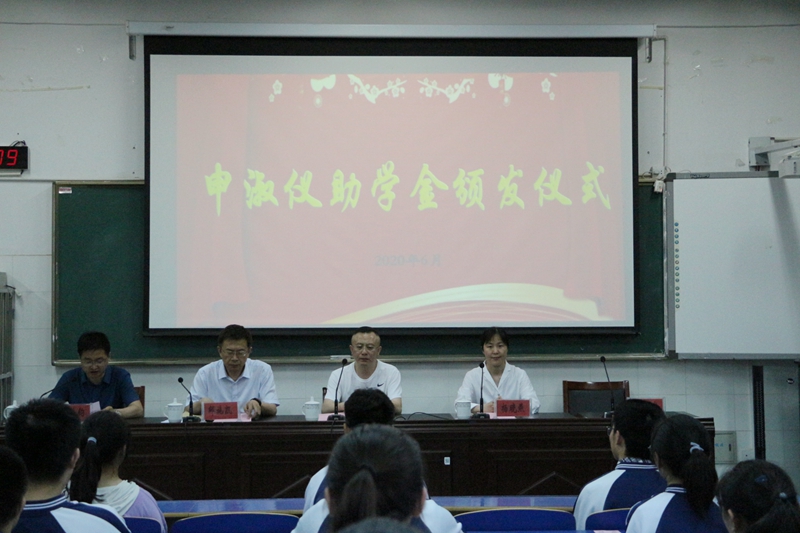 表彰儀式在高二年級(jí)階梯教室舉行。“申淑儀助學(xué)金”創(chuàng)辦人李蔭華先生的全權(quán)代表李杰先生,校長(zhǎng)、黨委書(shū)記鄒施凱出席。副校長(zhǎng)楊曉燕宣讀了今天的表彰名單后,嘉賓和領(lǐng)導(dǎo)為受助同學(xué)頒發(fā)了證書(shū)和助學(xué)金。