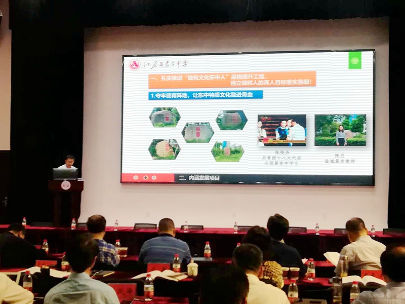 會上,鄒施凱校長以“聚力創(chuàng)建短板,推進(jìn)品質(zhì)立校”為題,就江蘇省東臺中學(xué)高品質(zhì)創(chuàng)建工作,結(jié)合PPT演示,作交流發(fā)言。