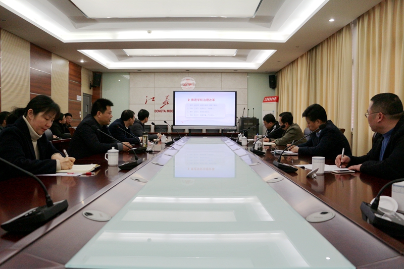 盧校長對江蘇省建湖高級中學管理團隊到訪我校十分重視。他向來賓闡述了東中立足新發展階段、貫徹新發展理念、構建新發展格局,辦人民滿意教育的初心使命和責任擔當。希望東中和建高互學、互鑒、互促,并肩前行,共同為學生的成長激發活力、貢獻智慧。雙方還就學校戰略定位,系統管理策略,創新人才培養,分層教學推進,強基計劃落實以及教師考核激勵等話題,深入進行了交流討論。