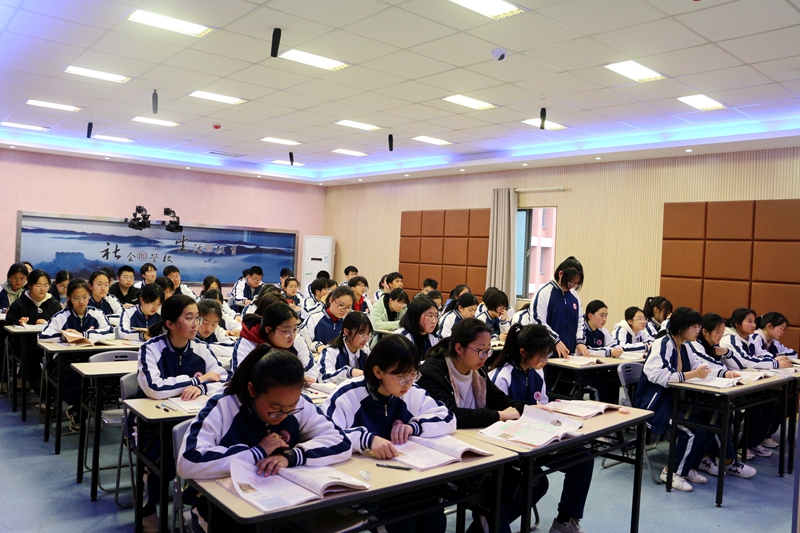 語文教學,雙方研討了新課改背景下,抓好課堂教學、提高講義編寫質量以及作文序列化資料的完備;數學教學,雙方從教學的起點設計、到教學過程中學生思維的激發、最佳教學效果的取得深入交流,探討了新高考教材中教學要求以及新老教材內容變化后個性化對策;英語教學,同課異構每周的組內公開課,重視學生詞匯、閱讀、書法的積累和能力訓練,開展系列社團活動,組織學生觀看一周要聞剪輯等具體做法,受到對方關注。