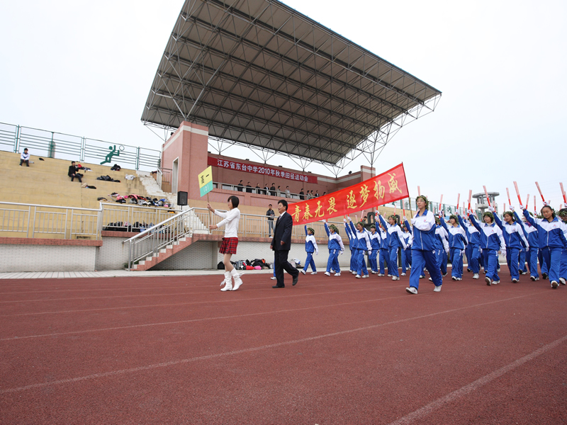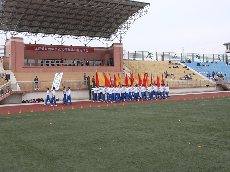副校長吳學(xué)錄致開幕詞。他說,本屆秋季田徑運動會是在學(xué)校順利通過四星級高中復(fù)評驗收,學(xué)校小高考、高考、各種競賽均取得喜人成績的形勢下拉開帷幕的。它是展示東中學(xué)子青春風采的舞臺,也是對我校體育競技水平的一次大檢閱,更是我校全面實施素質(zhì)教育的又一次大閱兵。發(fā)揚“更高、更快、更強”的奧運精神,把本屆運動會開得隆重、熱烈、圓滿、成功,是大家的共同心聲。他希望全體運動員、教練員和廣大學(xué)生進一步弘揚中華體育精神,團結(jié)友愛、頑強拼搏,賽出風格、賽出水平,為田徑傳統(tǒng)校創(chuàng)造新成績,增添新光彩。