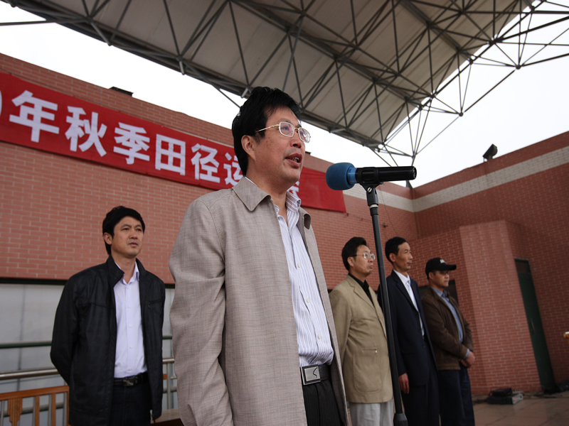 八時二十分,校長、黨委書記王兆平宣布田徑運動會開幕。